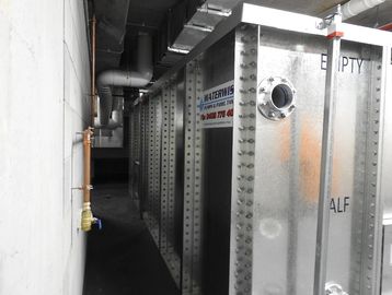 Galvanized Steel Bolted Panel Tank installed in basement of building on concrete slab